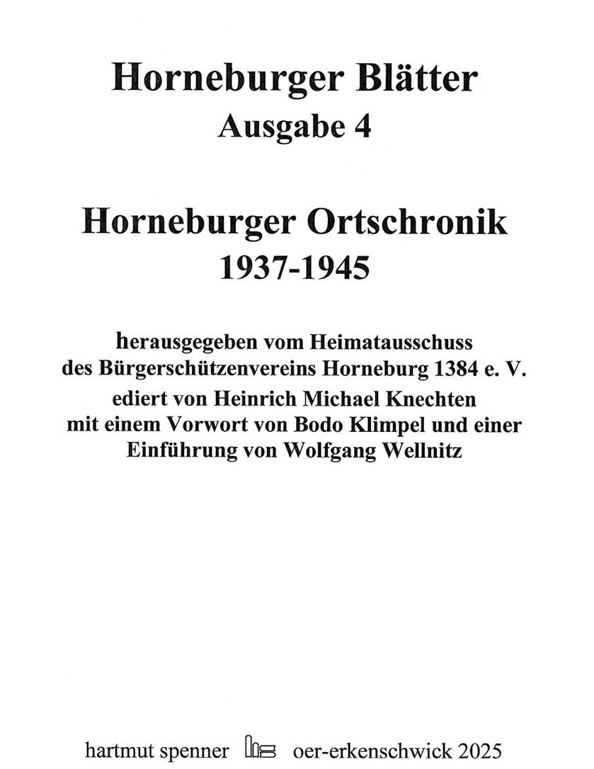 Die Herausgabe der vierten Nummer der Horneburger Blätter gestaltete sich schwierig. In diesem Heft geht es ja um die Zeit des Nationalsozialismus in Horneburg. Da nur wenige Quellen vorliegen, waren umfangreiche Recherchen notwendig, um den Hintergrund der Ortschroniken aufzuhellen. Angesichts der gegenwärtigen Entwicklungen ist diese Arbeit notwendig.