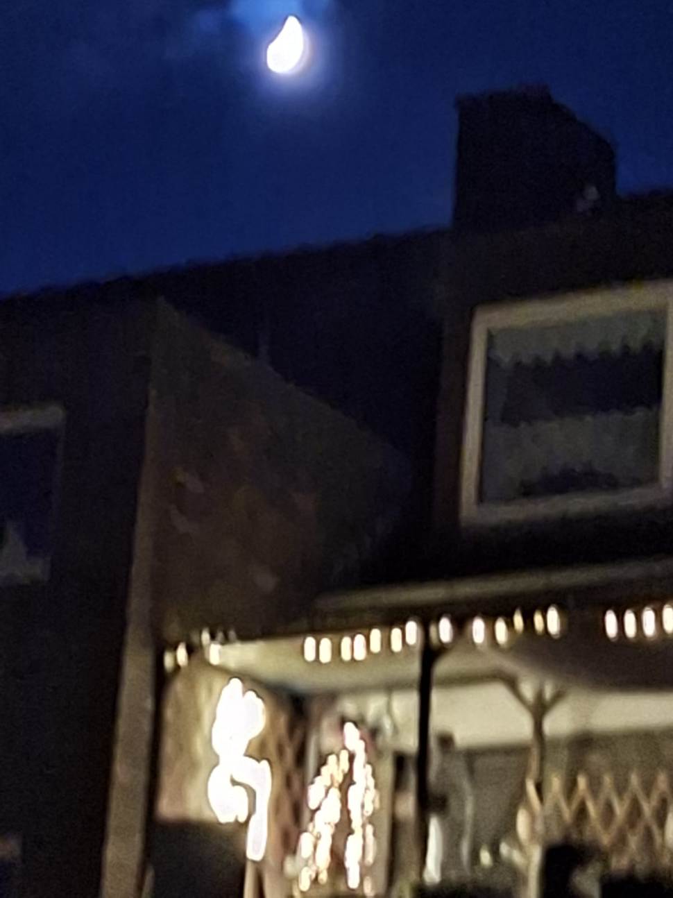 Oben der Mond, unten Weihnachtsbeleuchtung, Photographie von Cornelia Attolini