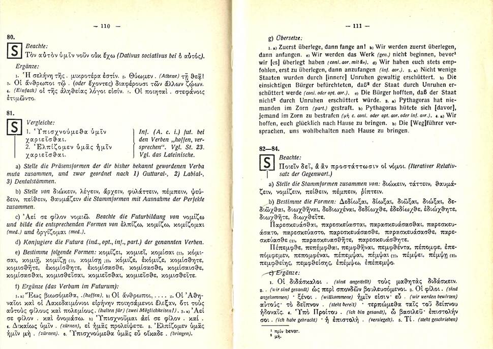 o Linnenkugel, Albert, und Wilhelm Uhlmann, Ars Graeca. Griechisches Unterrichtswerk, Übungsstoffe, Teil II: Satzlehre, Paderborn 1949.