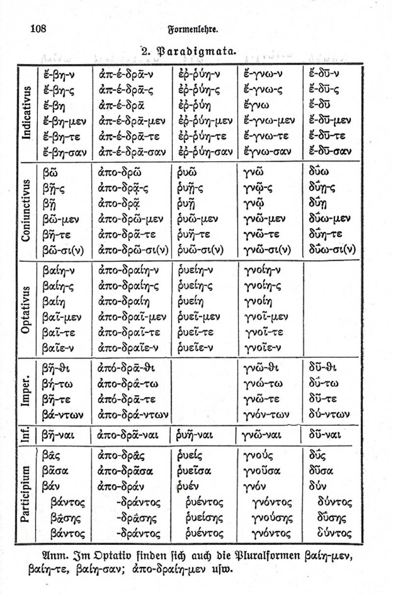Ars Graeca, Sprachlehre, Seite 108: Der athematische starke Aorist (Wurzelaorist)
