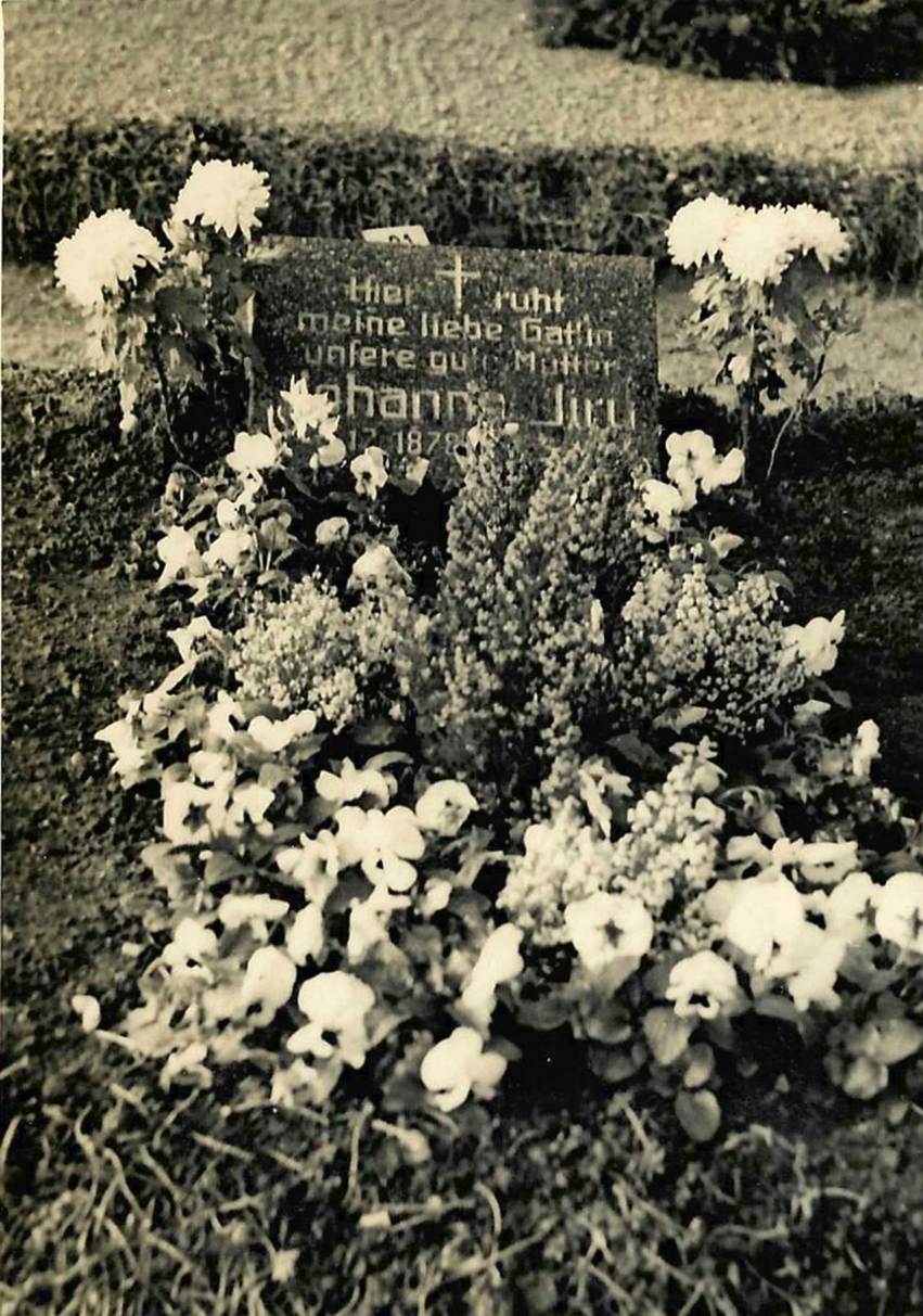Hier ruht meine liebe Gattin, unsere gute Mutter, Johanna Jiru 30. 12. 1878 - 5. 9. 1945, Friedhof in Großschweidnitz