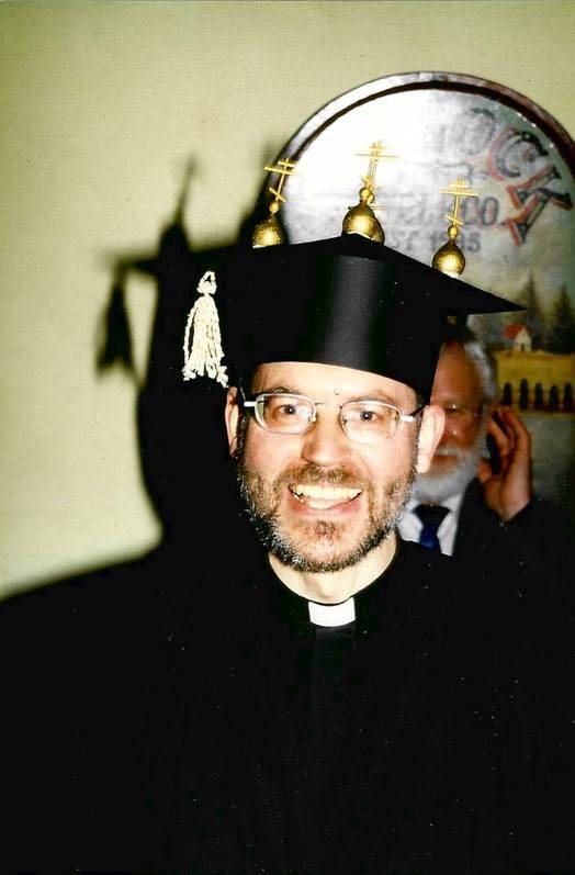 1998, mit byzantinischem Doktorhut, den Gottfried Müller (1926-2006) aus Wetter