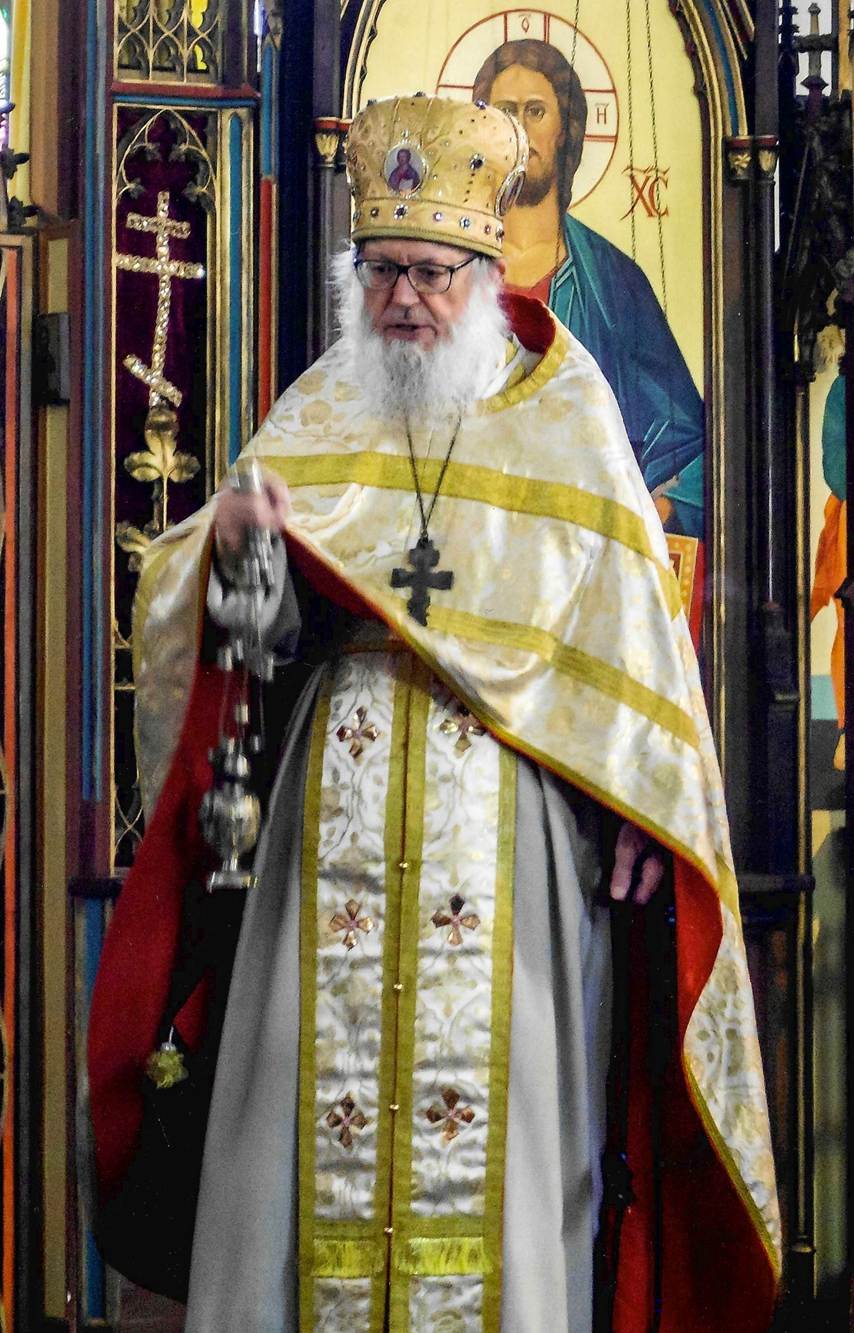 Horneburg 2018, Beweihräucherung vor dem Großen Einzuge, Feier des Vierzigjährigen Priesterjubiläums, mit Krone und Schmuckkreuz (mitrophorer Protopresbyter), Photographie von Werner Joemann
