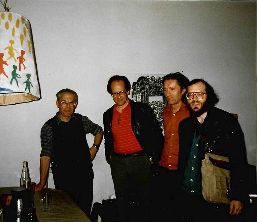 Kreuzberg, Naunynstraße 60 am 9. Mai 1986: Br. Franz Keller SJ (1925-2014), P. Godehard Pünder SJ (1935-2017). Michael Walzer (1948-1986) war zu dieser Zeit sterbenskrank.