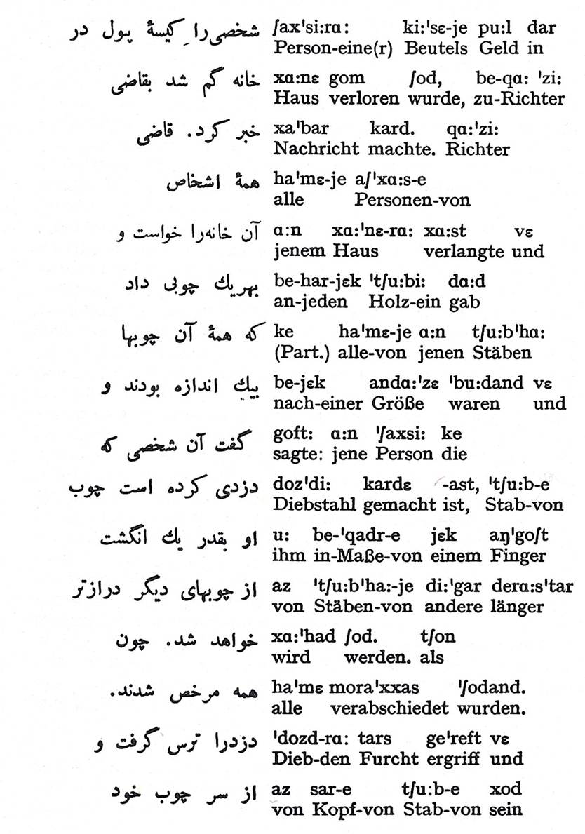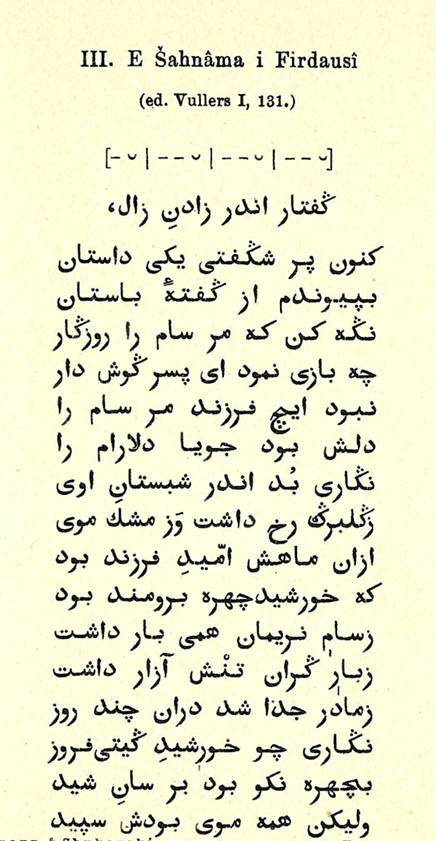 Firdusii Liber regum qui inscribitur Schahname, herausgegeben von Joseph August Vullers, Band I, Paris 1877, 131, in: Persische Grammatik, Carl Salemann und Valentin Shukovski, Leipzig 1947, 17*.